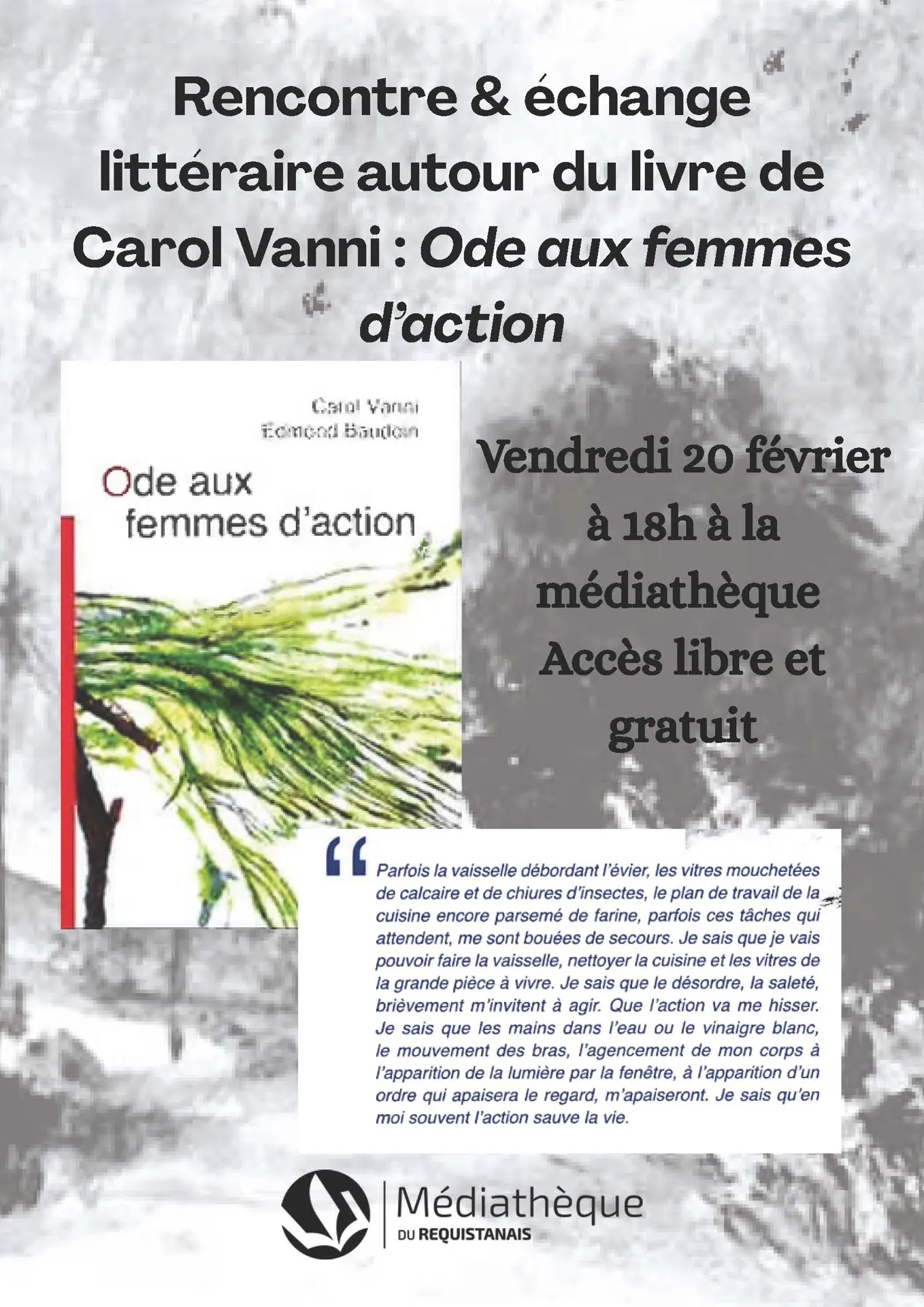 Rencontre et échange avec Carol Vanni sur son livre Ode aux femmes d’action. En accès libre et gratuit.