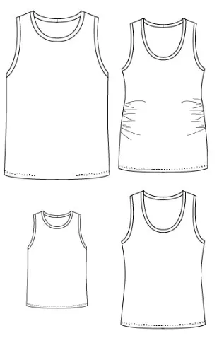 Fournitures :• Débardeur :90cm de jersey, fils assorti• Caraco : 170 cm de voile de coton / popeline / viscose / chambray (possible tissu festonné) , fils assorti, option : ruban fin ou cordon spaghetti pour les bretelles